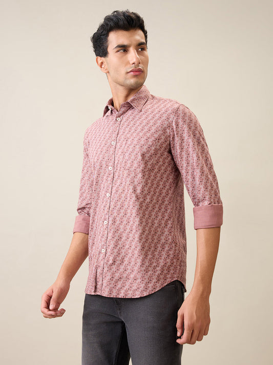 Parx Men Red Printed Slim Fit Cotton Full Sleeve Casual Shirt