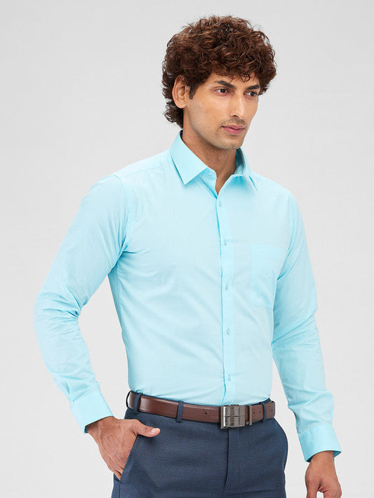 Raymond Blue Solid Contemporary Fit Cotton Formal Shirt