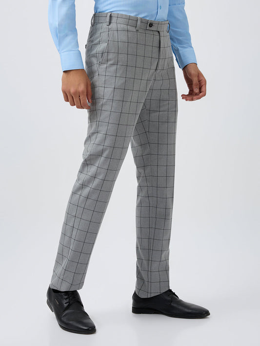 Raymond Men Grey Checkered Contemporary Fit Trouser