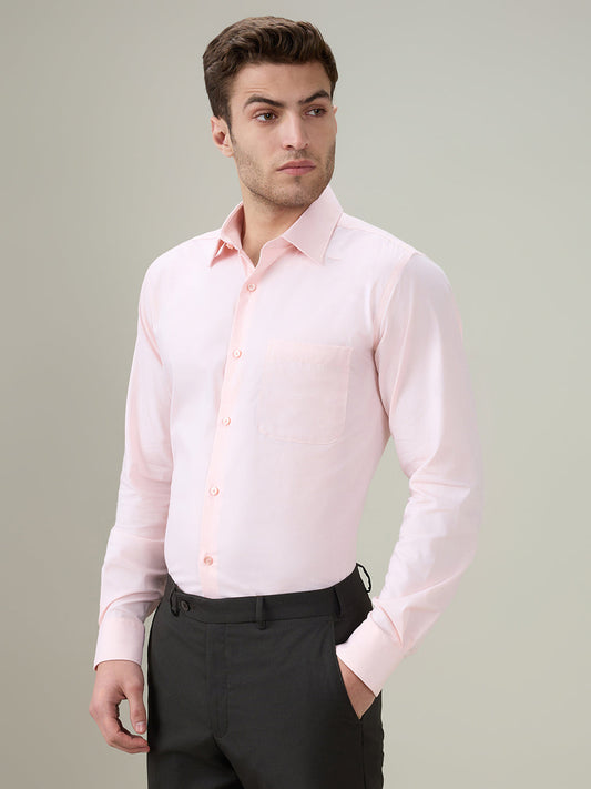 Raymond Men Maroon Solid Regular Fit Cotton Blend Full Sleeve Formal Shirt