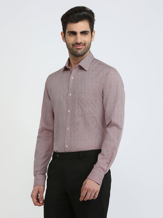 Raymond Men Red Checks Slim Fit Cotton Formal Shirt