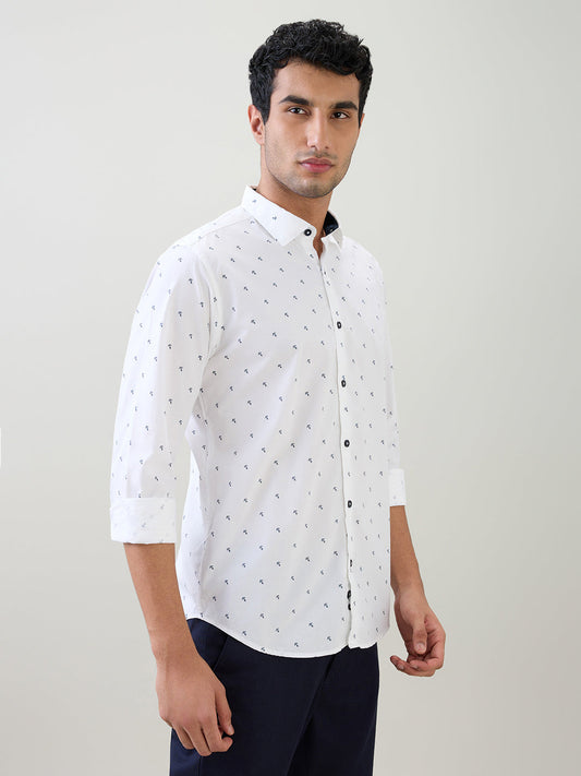 Raymond Men White Printed Slim Fit Cotton Shirt