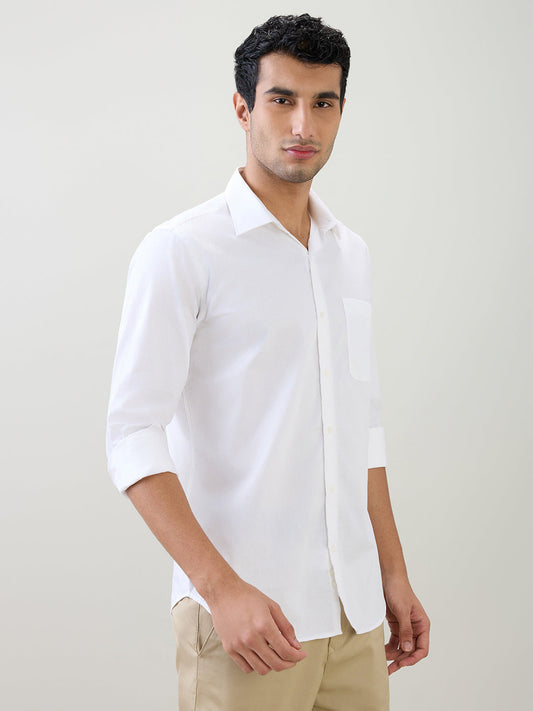 Raymond Men White Solid Slim Fit Cotton Blend Shirt