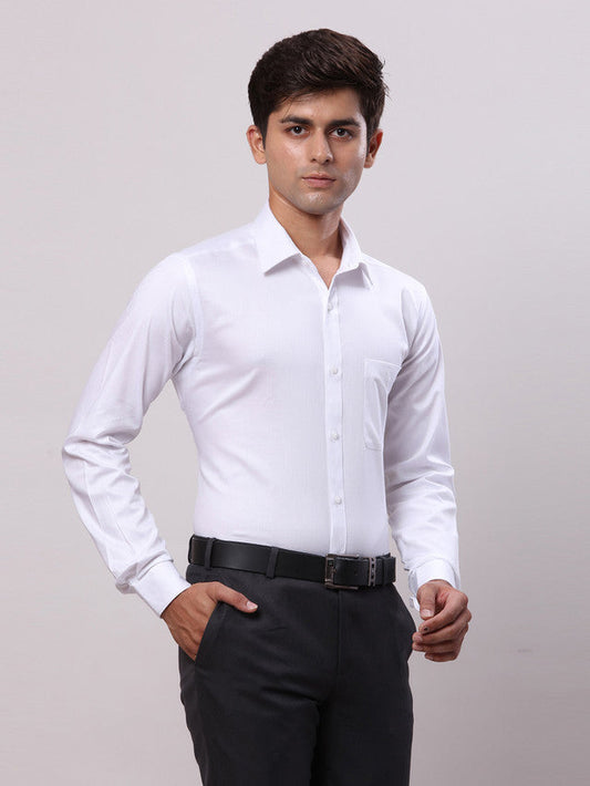 Raymond White Solid Slim Fit Full Sleeve Cotton Shirt