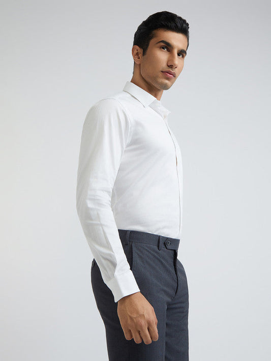 Raymond White Structure Slim Fit Full Sleeve Cotton Shirt