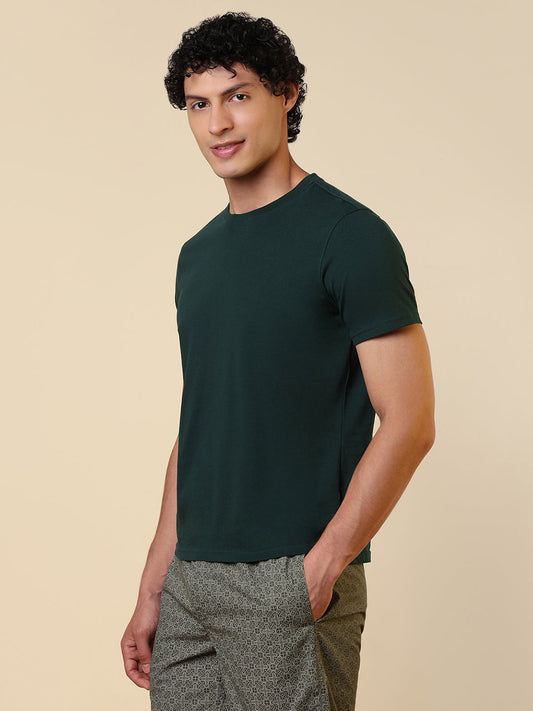 Sleepz Men Green Solid Regular Fit Cotton T-Shirt
