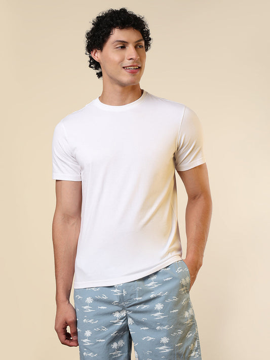 Sleepz Men White Solid Regular Fit Cotton Blend T-Shirt