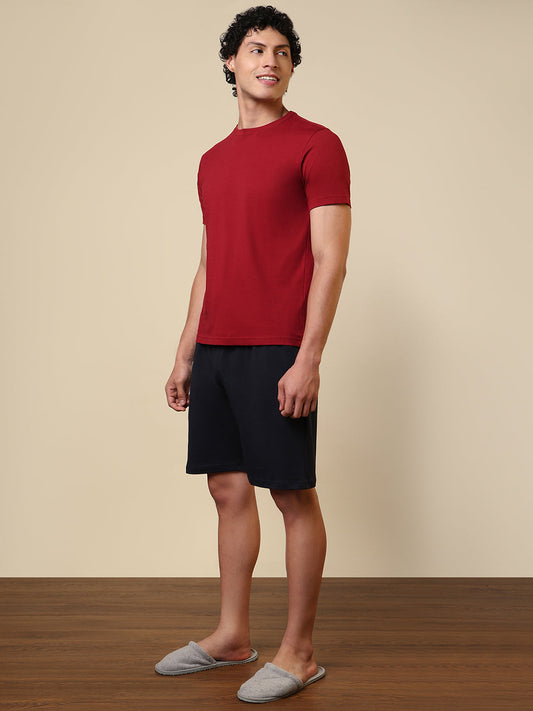 Sleepz Men Red Solid Regular Fit Cotton T-Shirt