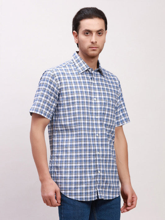Colorplus Men Blue Checks Comfort Fit Cotton Half Sleeve Casual Shirt