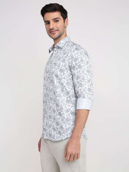 Colorplus Men Blue Printed Slim Fit Cotton Full Sleeve Casual Shirt