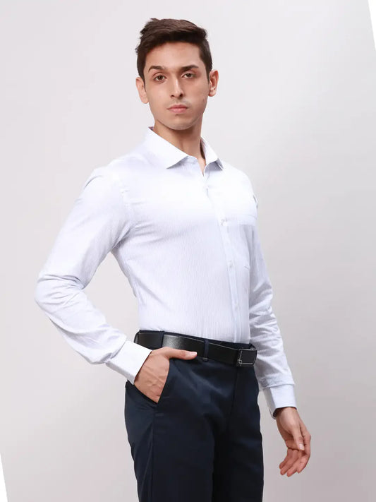 Park Avenue Blue Stripe Slim Fit Cotton Blend Formal Shirt