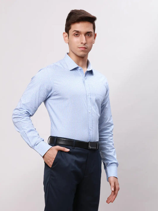 Park Avenue Men Blue Slim Fit Checks Cotton Shirts