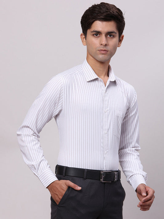 Park Avenue Grey Stripe Slim Fit Cotton Blend Formal Shirt