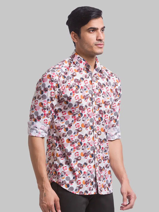 Men White Slim Fit Print Cotton Full Sleeve Shirts