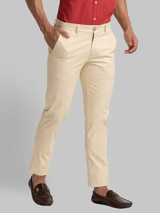 Men Khaki Super Slim Fit Solid Cotton Blend Trouser