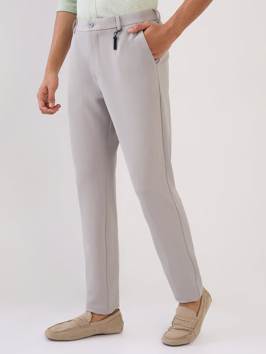 Park Avenue Men Grey Solid Commutech Fit Nylon Blend Trouser