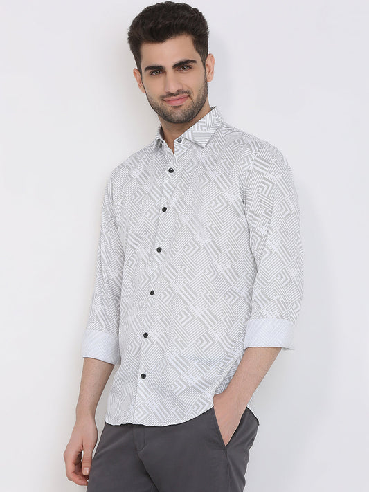 Park Avenue Men White Printed Slim Fit Cotton Full Sleeve Casual Shirt