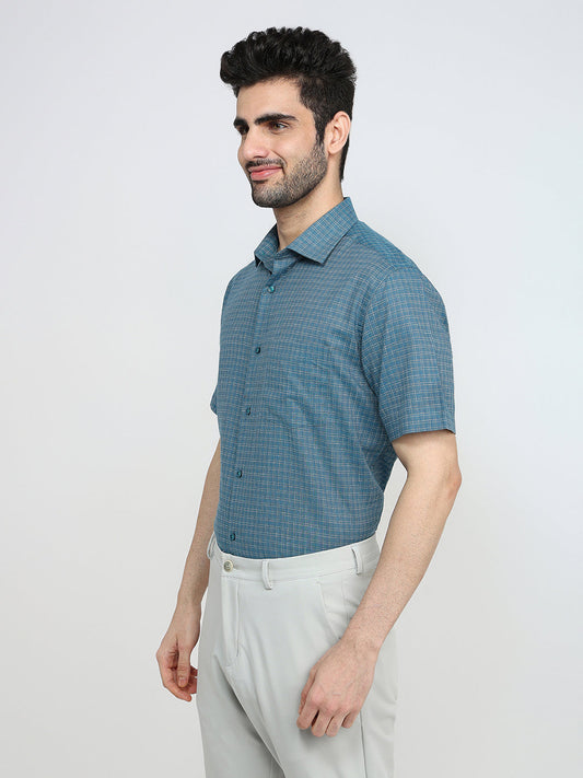 Park Avenue Men Blue Checks Regular Fit Cotton Blend Half Sleeve Formal Shirt