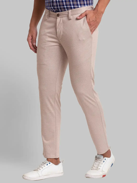 Men Khaki Carrot Fit Solid Cotton Blend Trouser