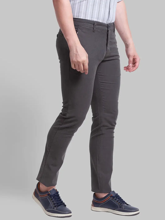 Men Grey Low Rise Tapered Fit Solid Cotton Blend Trouser