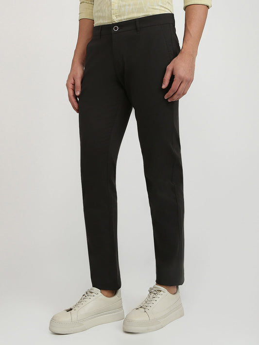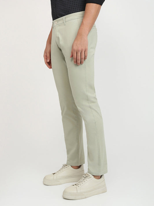 Parx Men Green Solid Low Rise Tapered Fit Cotton Blend Trouser