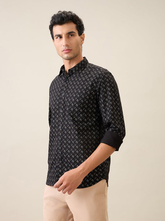 Parx Men Black Printed Slim Fit Cotton Casual Shirt