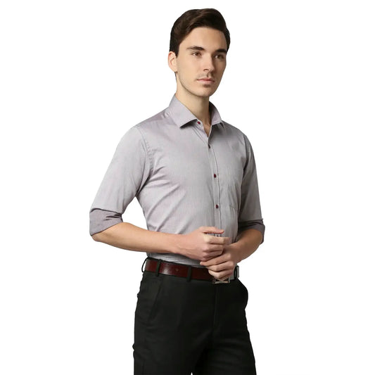 Park Avenue Men Grey Structured Slim Fit Cotton Formal Shirt