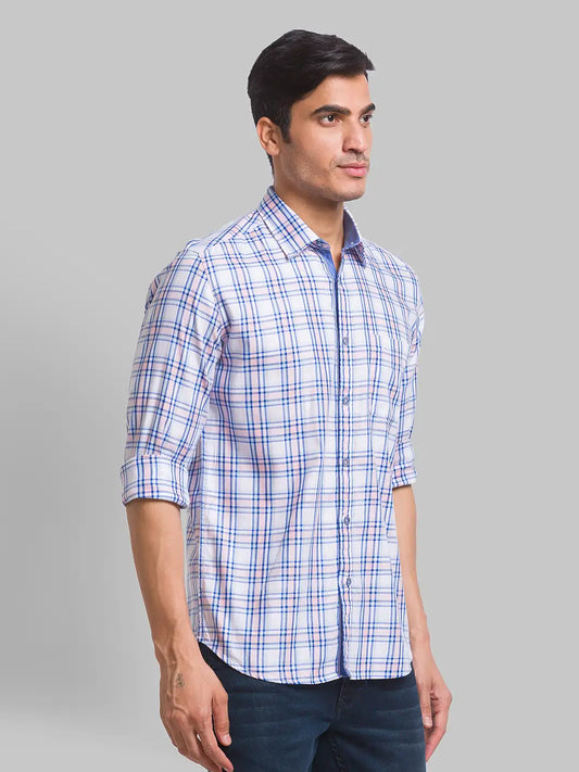 Parx Men Green Checks Slim Fit Cotton Blend Full Sleeve Shirt