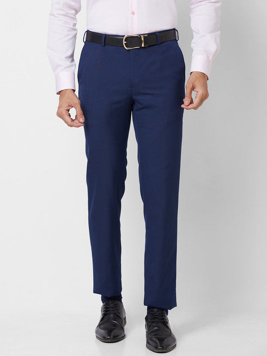 Raymond Men Blue Solid Slim Fit Polyester Blend Trouser