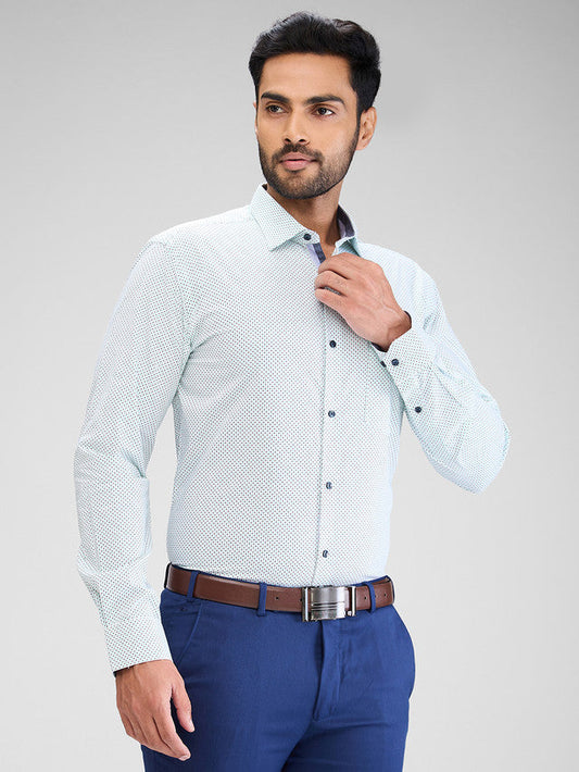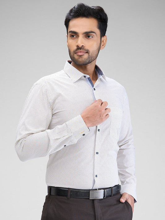 Park Avenue Men White Printed Slim Fit Cotton Formal Shirt