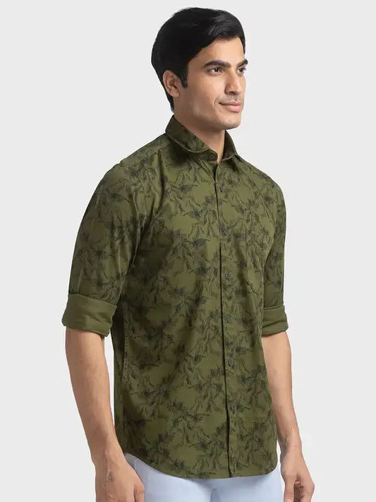 Men Green Tailored Fit Print Cotton Full Sleeve Shirts