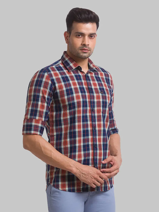 Men Red Slim Fit Checks Cotton Full Sleeve Shirts
