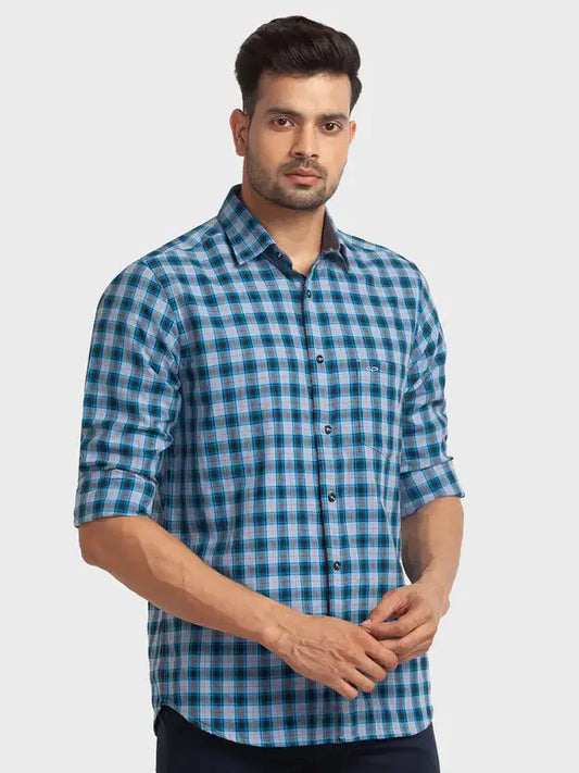Men Blue Tailored Fit Checks Cotton Full Sleeve Shirts