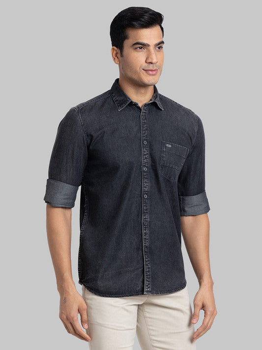 Parx Black Solid Slim Fit Cotton Casual Shirt