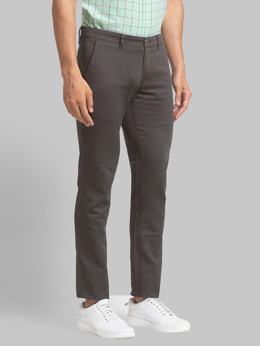 Parx Brown Solid Low Rise Tapered Fit Cotton Blend Trouser
