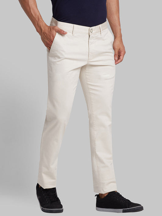 Parx Beige Solid Low Rise Tapered Fit Cotton Blend Trouser