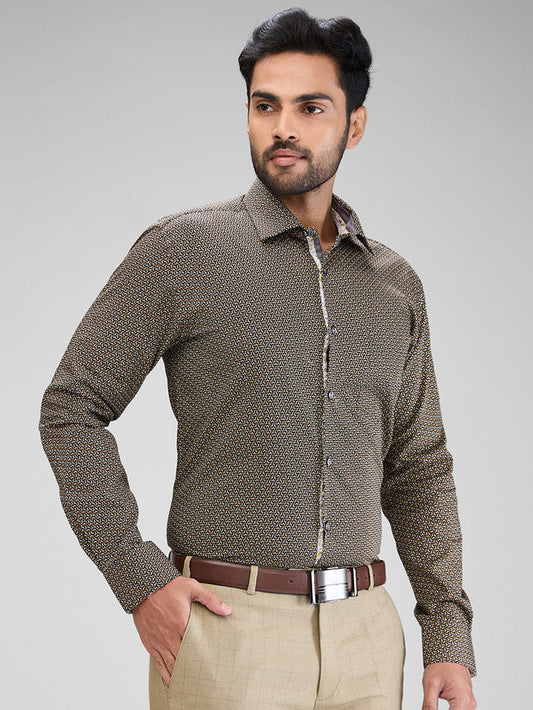 Park Avenue Khaki Printed Slim Fit Cotton Formal Shirt
