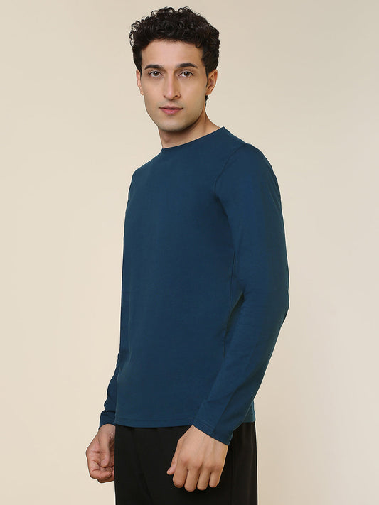 Sleepz Men Blue Solid Regular Fit Cotton T-Shirt