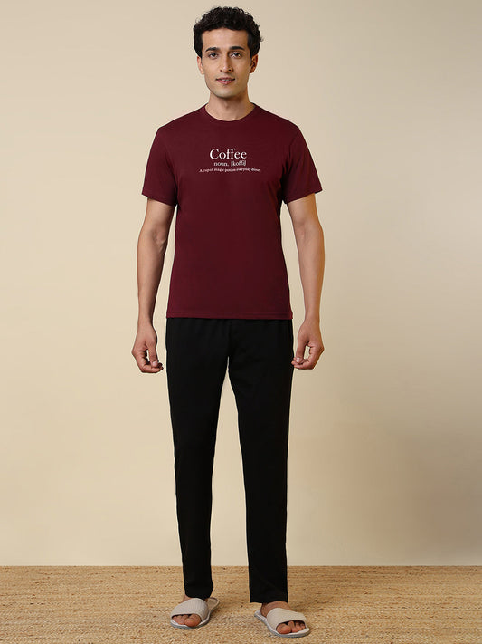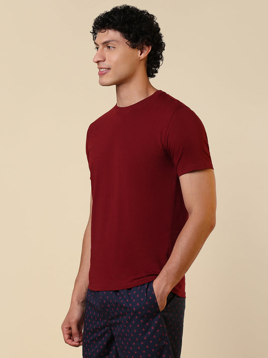 Sleepz Men Maroon Solid Regular Fit Cotton T-Shirt