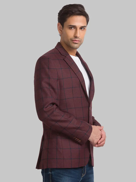 Park Avenue Men Blue Checks Active Fit Terry Blend Blazer