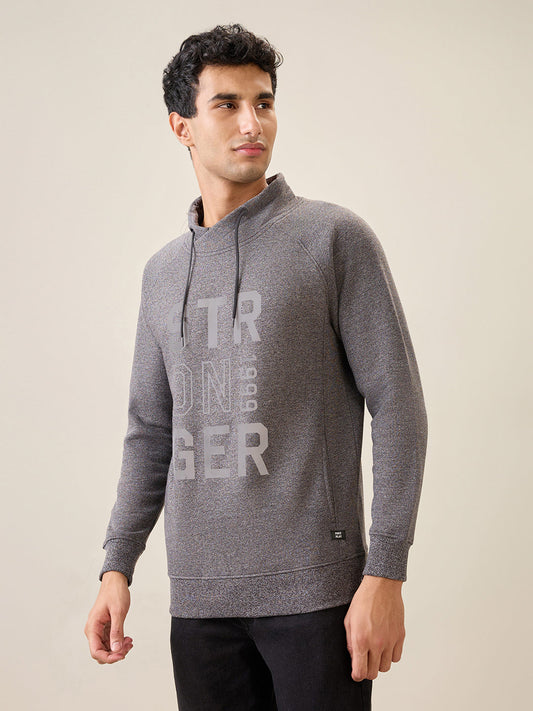Parx Men Grey Cut & Sew Regular Fit Cotton Blend Full Sleeve High Neck Collar Sweatshirt
