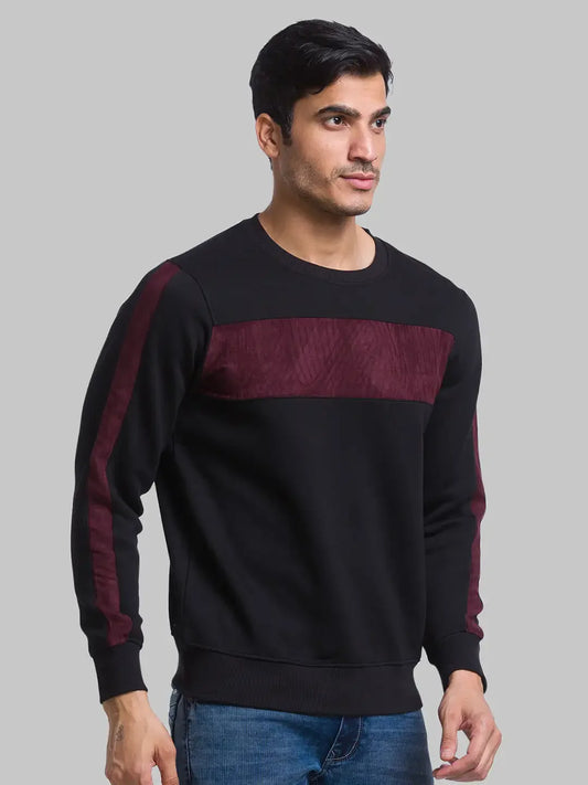 Men Black Regular Fit Cut & Sew Cotton Polyester Blend Round Collar Sweatshirts