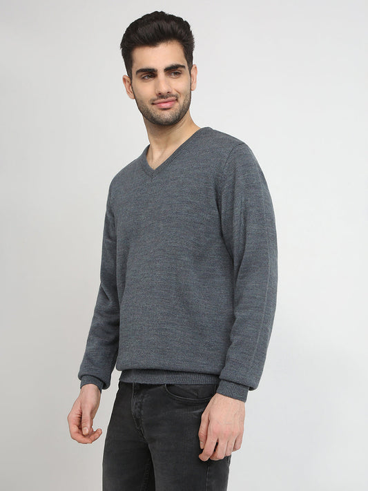 Colorplus Men Grey Solid Regular Fit Acrylic Blend Sweater
