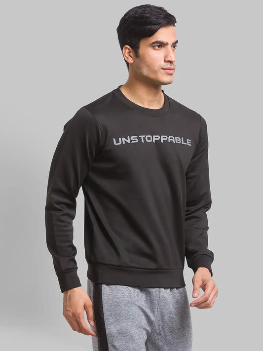 Colorplus Men Black Printed Regular Fit Polyester Blend Full Sleeve Sweatshirt