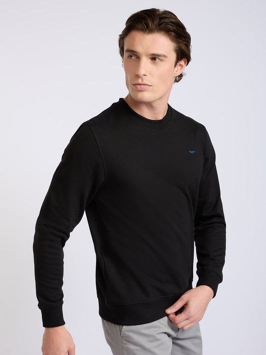 Park Avenue Men Black Solid Slim Fit Cotton Blend Round Neck Collar Sweatshirt