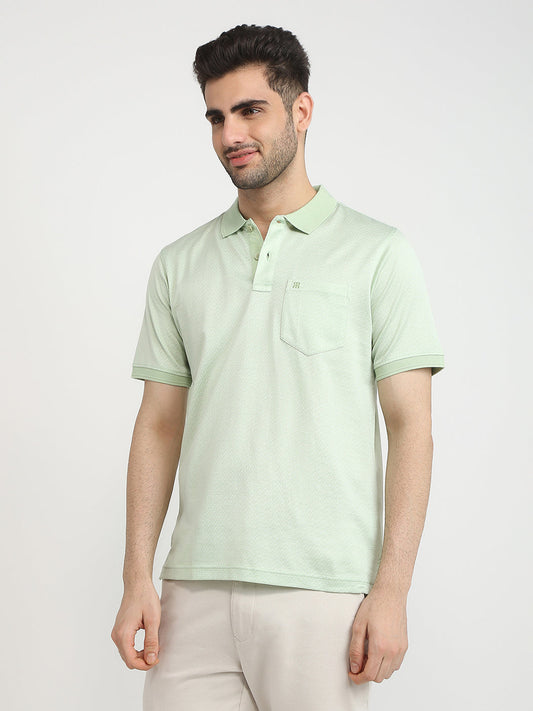 Raymond Men Green Jacquard Regular Fit Cotton T-Shirt