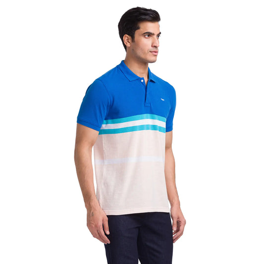Men Blue Regular Fit Yarn Dyed Cotton Round Neck Collar Polo T-Shirt