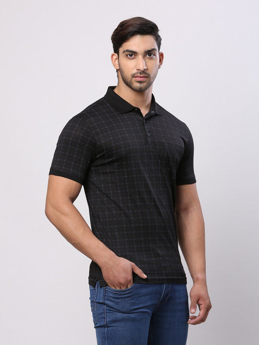 Park Avenue Black Printed Slim Fit Cotton T-Shirt