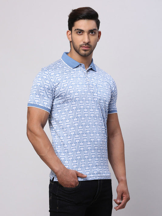 Park Avenue Blue Printed Slim Fit Cotton Blend T-Shirt