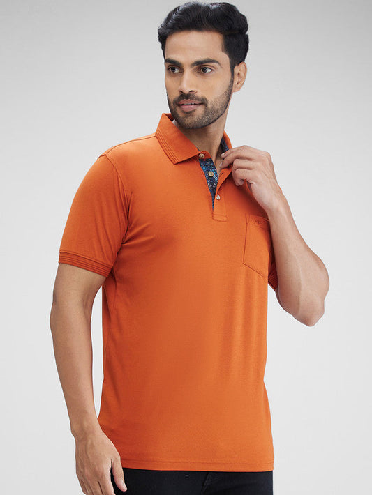 Colorplus Orange Solid Regular Fit Modal Blend T-Shirt